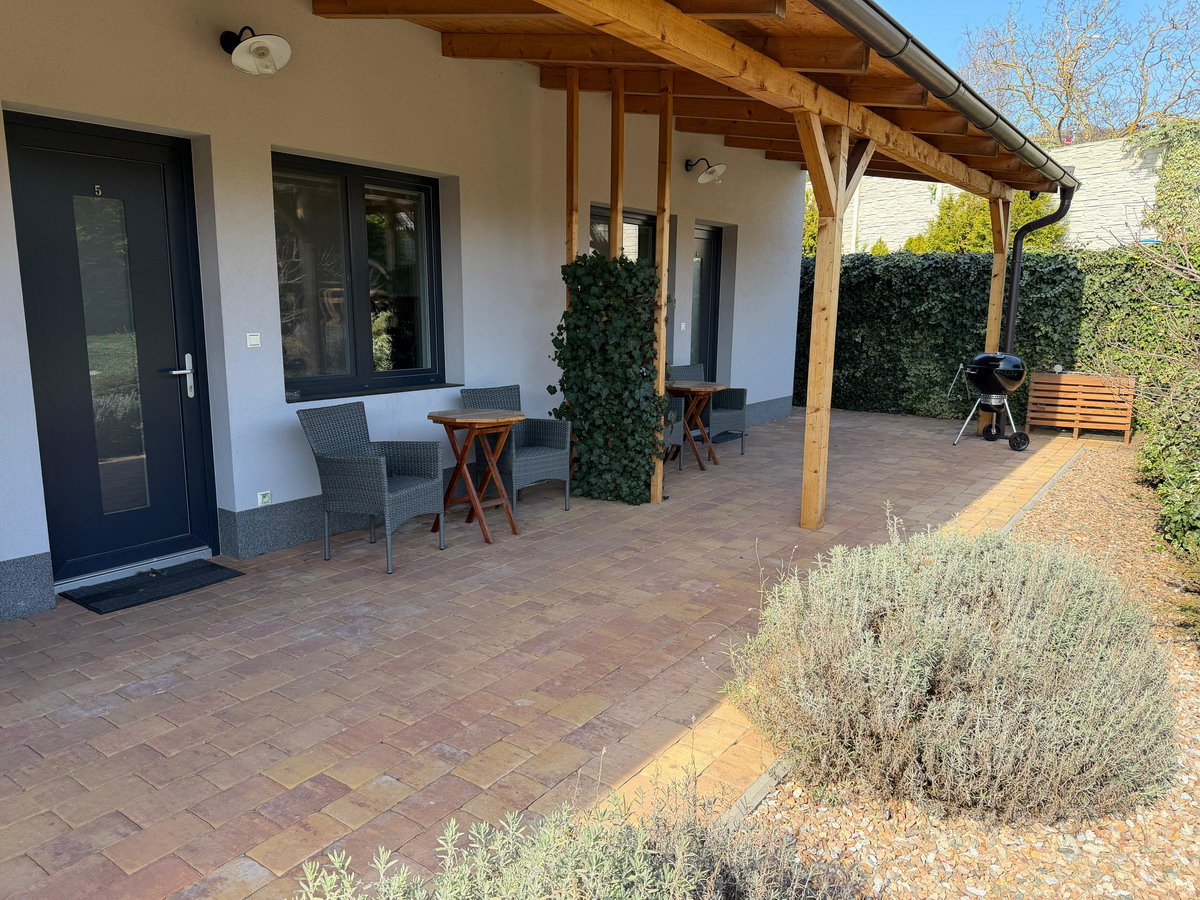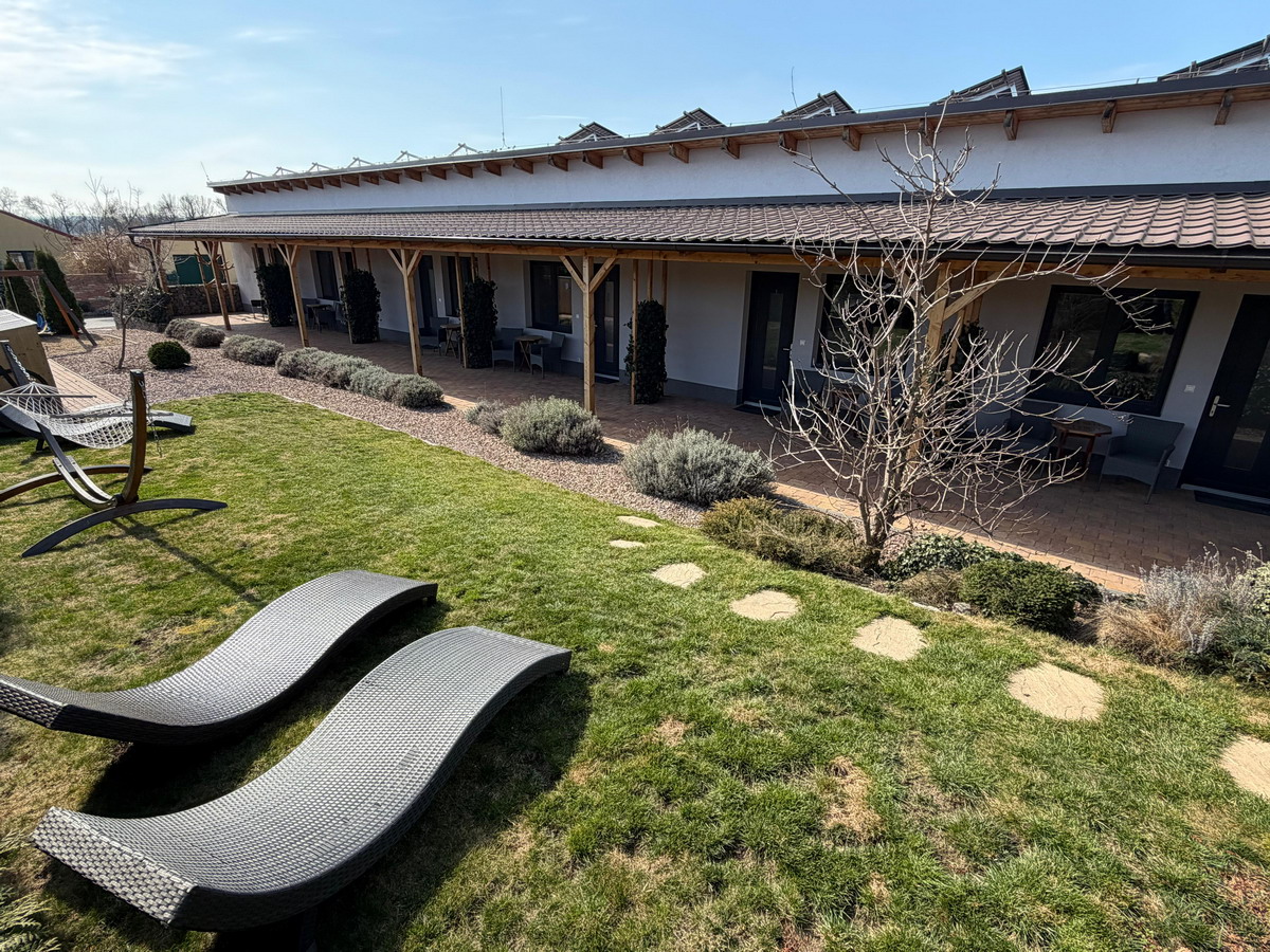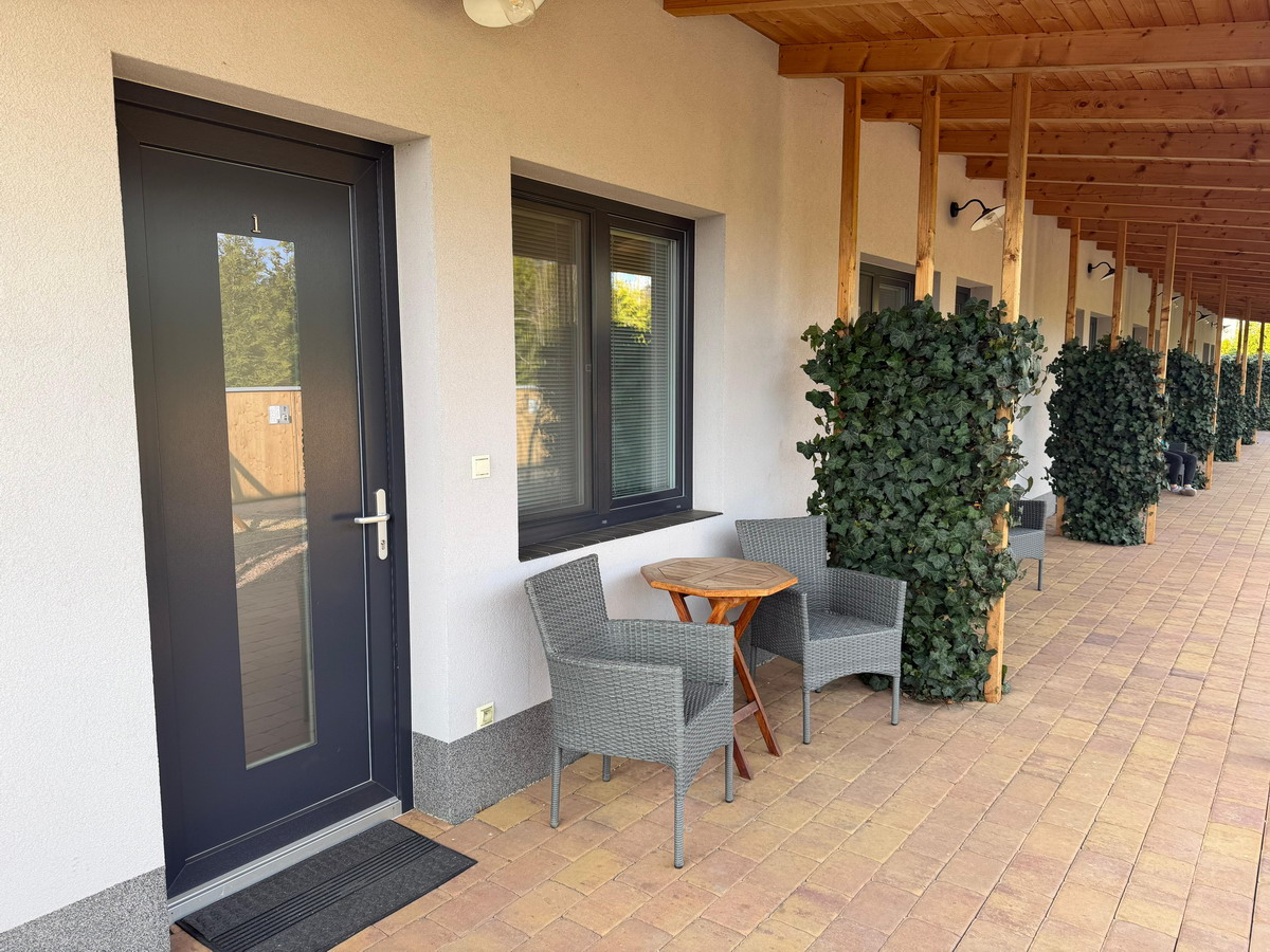 Odpočívejte a užívejte si našich komfortně vybavených apartmánových pokojů s vlastní terasou a venkovním posezením.
